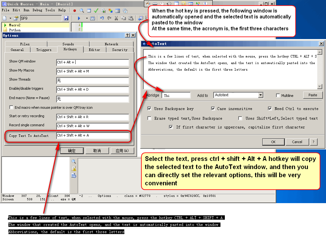 Select the text, press ctrl + shift + Alt + A hotkey will copy the selected text to the AutoText window, and then you can directly set the relevant options, this will be very convenient Smile