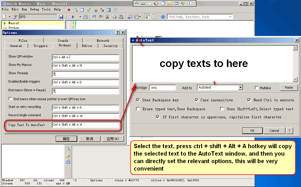 AutoText, is a very useful feature, add the above global hotkey and set window, will be very intuitive, simple, easier to use