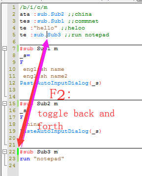In the AutoText file, press F2 to toggle back and forth between item definitions and subfunctions