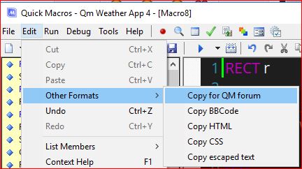 to copy code from qm to the forum